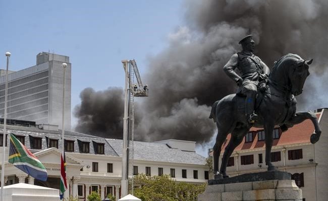 “Lots of books and bookshelves (are) smouldering,” Jean-Pierre Smith, a Cape Town mayoral committee member responsible for safety and security, adding that the interior of the National Assembly had been destroyed by fire, water and smoke.